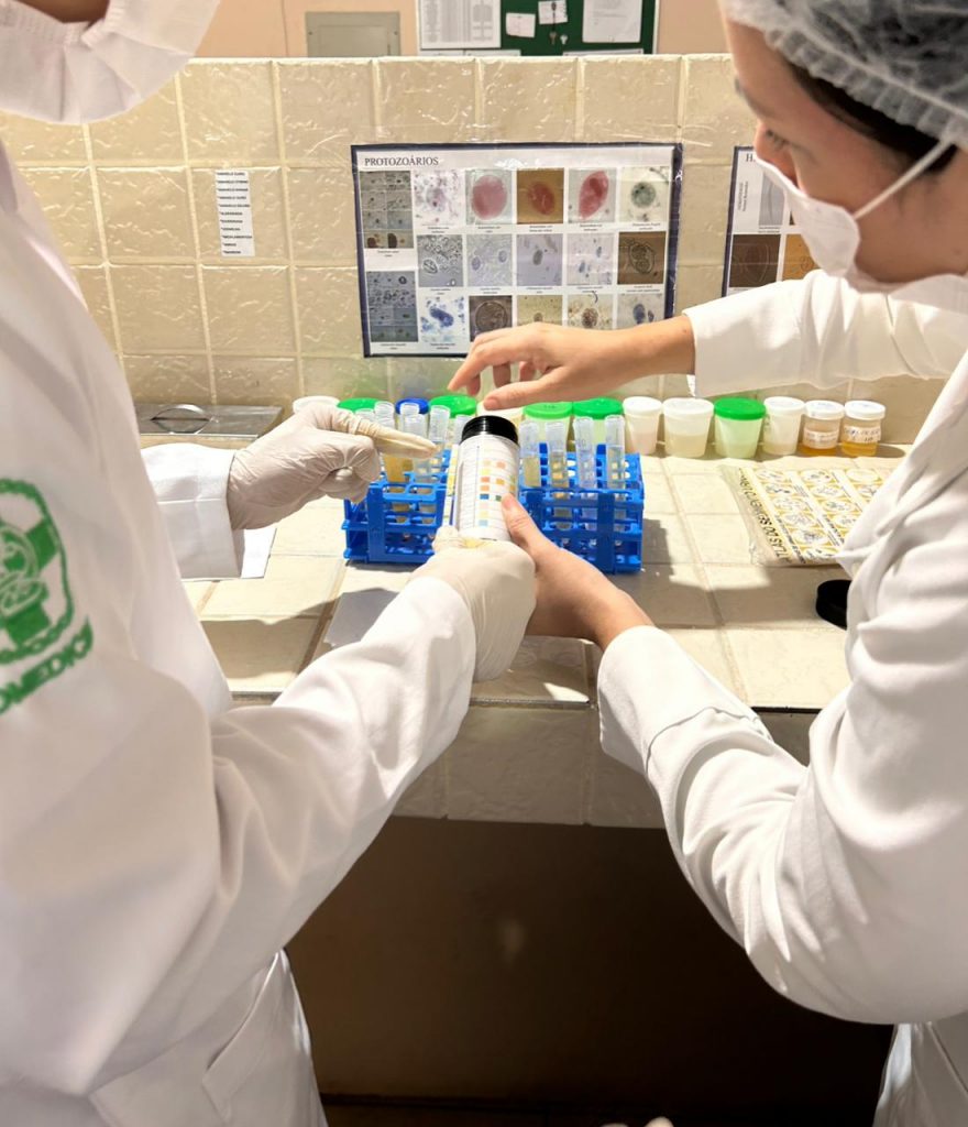 O estágio tem duração de dois semestres, e os discentes estão distribuídos entre diferentes municípios e laboratórios para o seu cumprimento. Os 20 discentes de Ananindeua realizam o estágio no Laboratório de Análises Clínicas do Centro de Saúde Escola do Marco (CESM) e no Hospital da Mulher do Pará (HMPA). No município de Soure, 36 acadêmicos estão estagiando em diferentes locais: em Belém, no Laboratório da Fundação Santa Casa de Misericórdia do Pará; no próprio município de Soure, no Laboratório do Hospital Menino Deus; e em Salvaterra, no Laboratório do Hospital Municipal. A turma de Cametá é a que possui o maior número de alunos, totalizando 41 discentes, todos estagiando em diversos laboratórios do município. Entre eles estão: o Laboratório da Clínica Cardiovida, o Laboratório Central de Cametá, o Laboratório da Hecoped, o Laboratório Carlos Lima, o Laboratório Nonato Caldas, o Laboratório da UPA, o Laboratório do Hospital Regional de Cametá e o Laboratório do Hospital Marilac. O estágio busca colocar em prática os conhecimentos dos alunos em análises clínicas, com o objetivo de prepará-los para o mercado de trabalho. Ao final do estágio obrigatório, os alunos deverão estar aptos a executar técnicas laboratoriais, elaborar laudos, avaliar mecanismos associados aos procedimentos laboratoriais e às doenças, bem como acessar e utilizar fontes de conhecimento na área de análises clínicas.